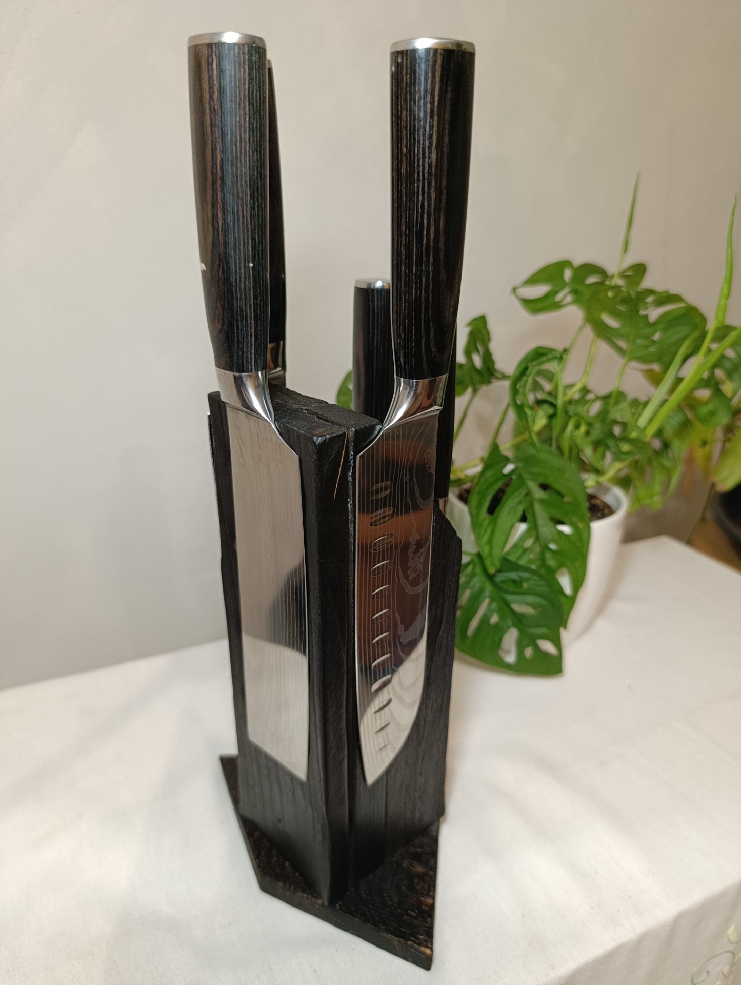 Materiál : dřevo-lepené frakce, čistý přírodní dub a třešeň , hloubkově opáleno a vybroušeno. Ošetření je provedeno speciálním přírodním Japonským olejem vhodným i pro nože.