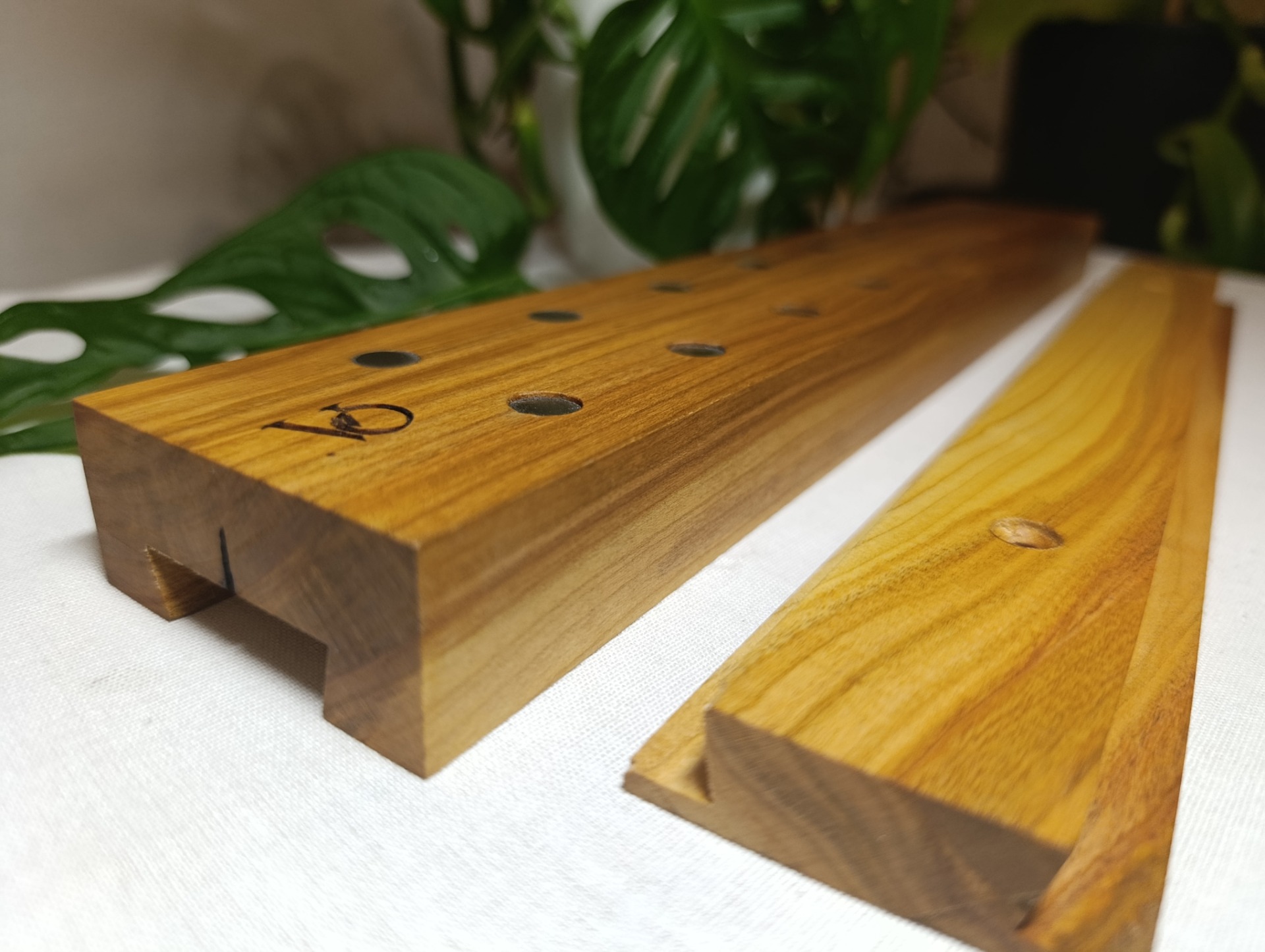 Pro zákazníky vyrábíme stojany a držáky na nože z čistého přírodního dřeva různých druhů jako dub, třešeň, švestka nebo jasan.
